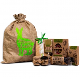 Paczka wielkanocna z kabanosami i smalcem od Bacówki, polskim miodem wielokwiatowym, herbatką owocową oraz słodyczami z motywem wielkanocnym