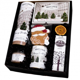 Ekskluzywny, świąteczny box prezentowy z produktami od Wierzynka, śliwkami od Alty Saskiej oraz przepięknym, ręcznie malowanym piernikiem od Piernik Wrocławski.